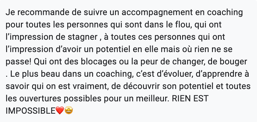Tout ce travail se fait à ton rythme, dans une démarche de coaching :